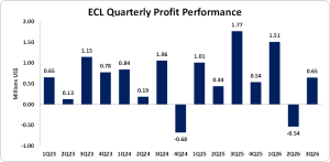 ECL reports 50% decline in nine months net profit
