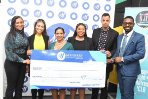 Captured left to right: Rachel Kirlew- AVP Investment Banking, Mayberry Investments Ltd, Stephanie Harrison- VP-Marketing, Mayberry Investments Ltd, Audrey Allwood- president of JABBFA, Asha Smellie- Assistant Manger, Sales, Mayberry Investments Ltd, Kirk Frankson- Vice President, JABBFA and Junior Roberts- Investment Advisor, Mayberry Investments Ltd.
