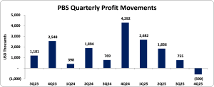 Productive Business Solutions Limited (PBS) reported a 3% decrease in revenue for the twelve months ended December 31, 2025, totaling US$375.87 million, compared to US$387.39 million for the corresponding period in 2024. Revenue for the fourth quarter increased by 13%, closing at US$111.69 million, up from US$99.21 million in Q4 2024.