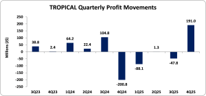 Notably, Tropical’s stock price closed the trading period on February 10, 2026, at a price of $1.24 with a corresponding P/E ratio of 38.35x.