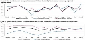 According to the U.S. Bureau of Labor Statistics, the Producer Price Index (PPI) for final demand in the U.S. increased 0.2 percent in November on a seasonally adjusted basis. This follows a 0.1 percent rise in October and a 0.6 percent increase in September. On an unadjusted basis, the index for final demand advanced 3.0 percent over the 12 months ended November 2025.